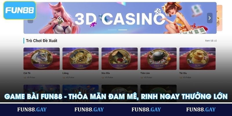 Game bài Fun88 là điểm đến giải trí hấp dẫn, quy tụ đông đảo người yêu thích cá cược trực tuyến và tìm kiếm cơ hội nhận thưởng giá trị. Không chỉ mang lại cảm giác thư giãn, sân chơi còn giúp hội viên chinh phục phần quà hấp dẫn khi chiến thắng. Với kinh nghiệm lâu năm, Fun88 liên tục đầu tư phát triển sảnh game bài đa dạng, tỷ lệ trả thưởng cạnh tranh cùng quy trình tham gia đơn giản, phù hợp cho mọi đối tượng.